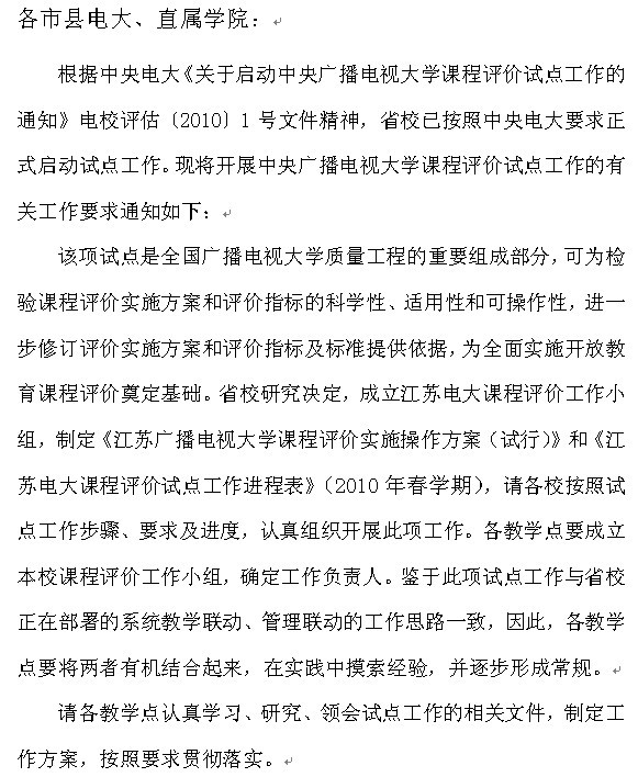 关于开展中央广播电视大学课程评价试点工作的通知