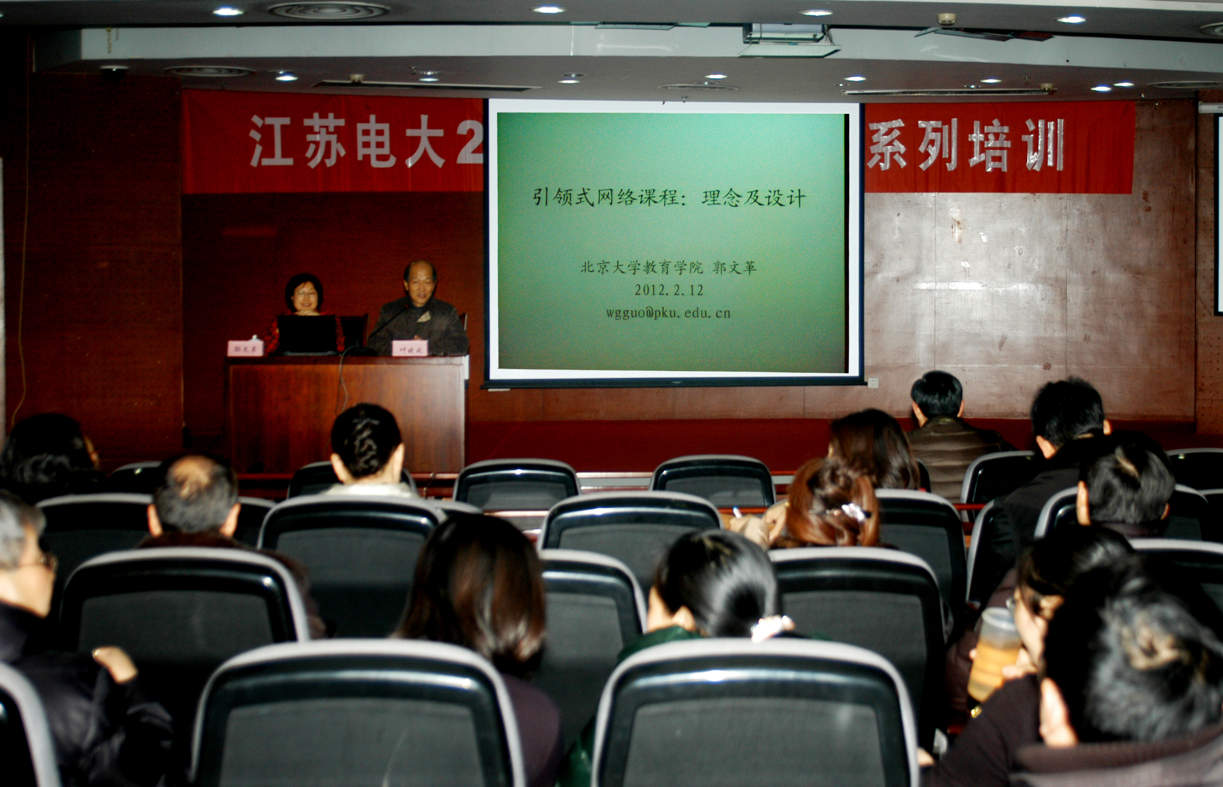 应我校开放教育教学部的邀请,北京大学教育学院郭文革博士于2012年2月12日下午在我校定淮门校区二楼报告厅为为全校从事开放教育的专兼职教师作了一场题为“引领式网络课程:理念及设计”的学术报告。郭文革博士曾任北京大学教育技术系系主任,系全国教师网联平台建设专家组专家,同时是GCCCE2008、GCCCE2010、ICHL2010等国际会议程序委员会专家。