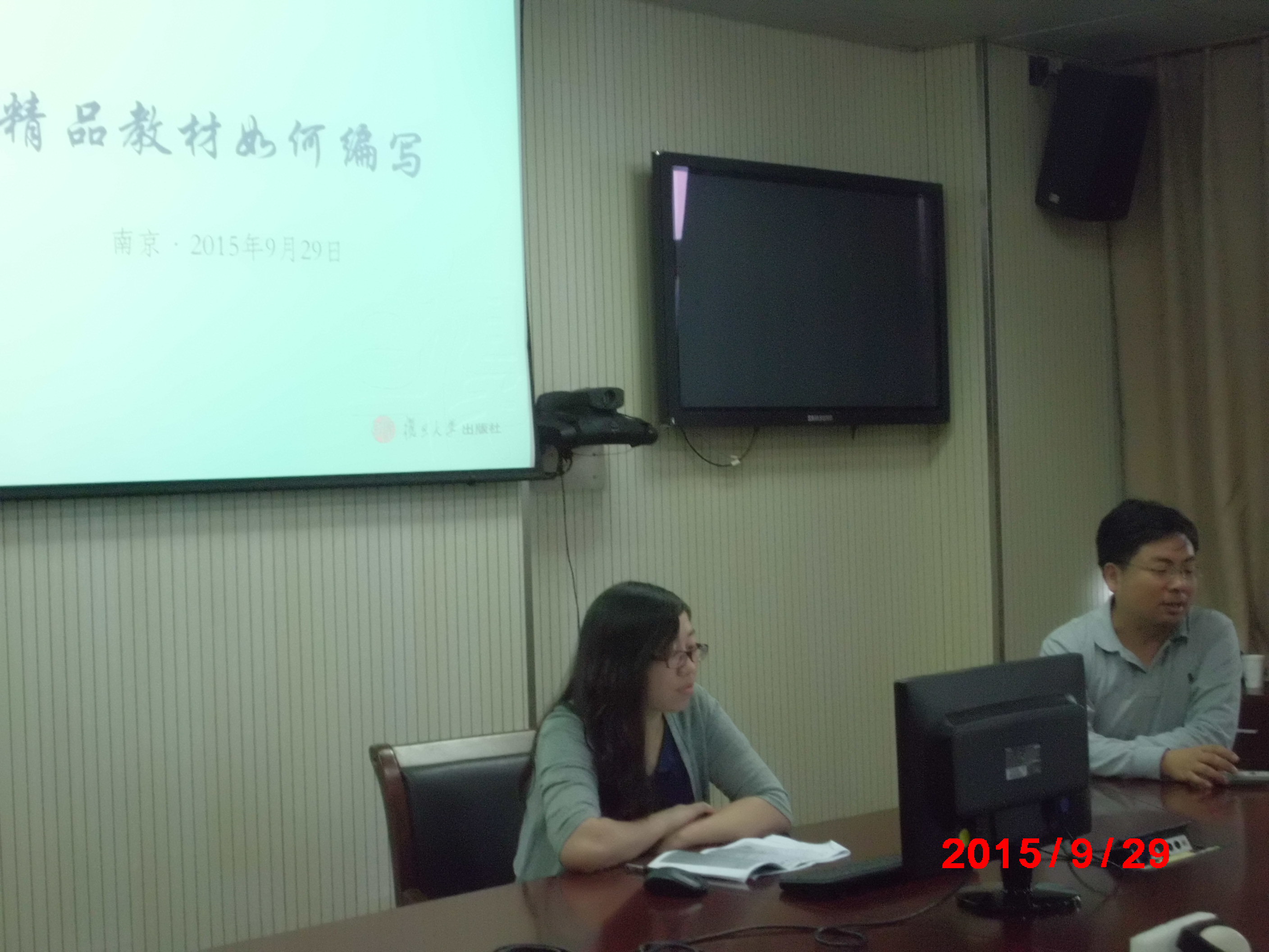 随后,出版社方面与公共管理学院就第一批递交样稿的三门课程教材的时间安排、内容组织等细节进行了充分地沟通与交流。与复旦大学出版社合作进行精品教材建设是我校提升教材质量,打造精品课程与精品教材的一次探索,有望在更高的平台上有效组合资源,建设具有江苏开大特色的高水平多媒体立体教材,提升为教师和学生服务的水平。今后资源建设中心与有关学院还将持续组织系列相关活动。