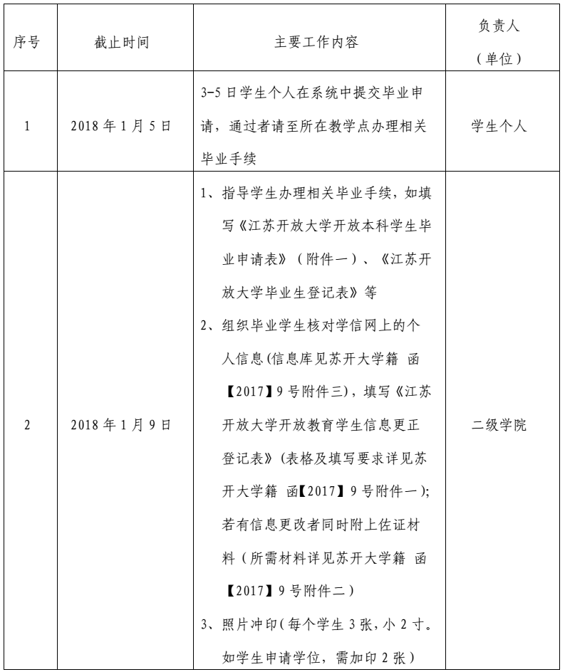 根据教学进度安排,现将2018届春季江苏开放大学开放教育毕业审核工作的相关事宜及要求通知如下,请遵照执行。