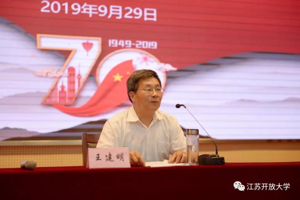 9月29日晚,江苏开放大学党委书记王建明以《爱国情 荣校志 奋发心——奋进伟大时代 书写青春华章》为题为2019级部分新生讲授“思政第一课”。