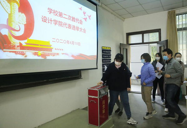 根据《关于做好江苏开放大学(江苏城市职业学院)第二次教职工代表大会有关选举工作的通知》要求,设计学院党总支部于2020年4月10日上午9:30,在古平岗校区教学楼1阶2教室召开教职工大会,组织投票选举。校党委常委、副校长王玮出席会议。