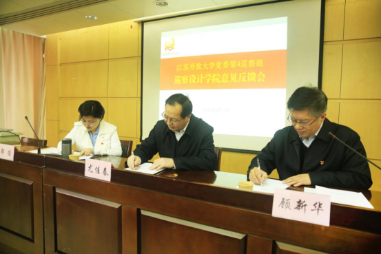 4月17日中午,党委第4巡察组在定淮门校区召开巡察设计学院意见反馈会,校党委巡察办公室主任、校纪委书记顾新华,校党委常委、副校长、第4巡察组组长尤佳春出席会议,第4巡察组全体成员以及设计学院全体教职工参加了反馈会。会议由设计学院党总支部书记邹佳主持。