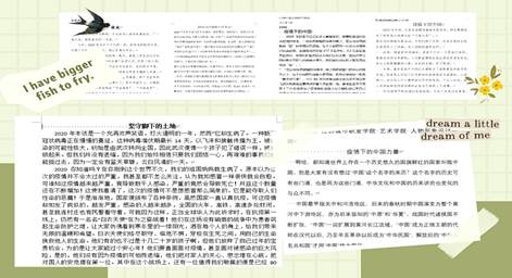 为深入贯彻习近平总书记关于坚决打赢疫情防控的人民战争、总体战、阻击战的重要指示精神,紧紧围绕立德树人目标,厚植大学生爱国主义情怀,艺术学院于4月7日-17日面向全体学生开展“疫情下的中国”征文活动。