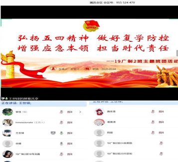 作为第一批返校的班级,19广制2班的返校同学在校园里度过了一个特别的青年节。他们以弘扬五四精神为出发点,以承担时代责任为目标,以“做好复学防控,增强应急本领”为主要内容,用线上与线下相结合的方式进行了五四青年节主题班会,学院党总支书记邹佳、副书记院娅、团总支书记魏若思、班主任江萌参加了主题班会。