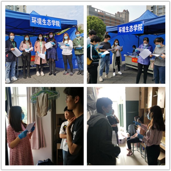返校当日,学院在校门口设立接待站,组成了党员先锋队,党总支部书记段英和党总支部副书记叶海跃在接待站进行现场指导,全体辅导员为学生便捷办理返校报到手续,避免交叉接触。返校当日下午,为提升学生宿舍安全卫生水平,防止病原体的传播,进一步普及新冠肺炎防治知识,提高学生卫生健康意识和自我防护能力,学院组织开展“防疫有我、爱卫同行”学生宿舍安全卫生大扫除活动。学院副院长秦品珠带领环境工程系与风景园林系各班主任深入宿舍指导学生进行宿舍大扫除,对于不合格的宿舍进行指导与整改。在检查宿舍的同时,老师们关心到每一位同学,积极与学生进行联系和沟通,为学生到校后的学习答疑解惑,保证了开学后网上教学的顺利实施。学工办全体辅导员继续加大防疫知识宣传,加强学生心理疏导,做好学生健康监测,做好每日晨午检制度。