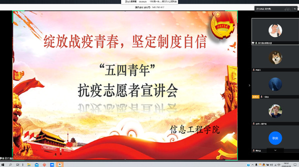 信息工程学院自学生返校以来,充分利用腾讯会议、QQ会议等网络平台,积极组织全体学生,分阶段有序开展疫情防控主题教育。