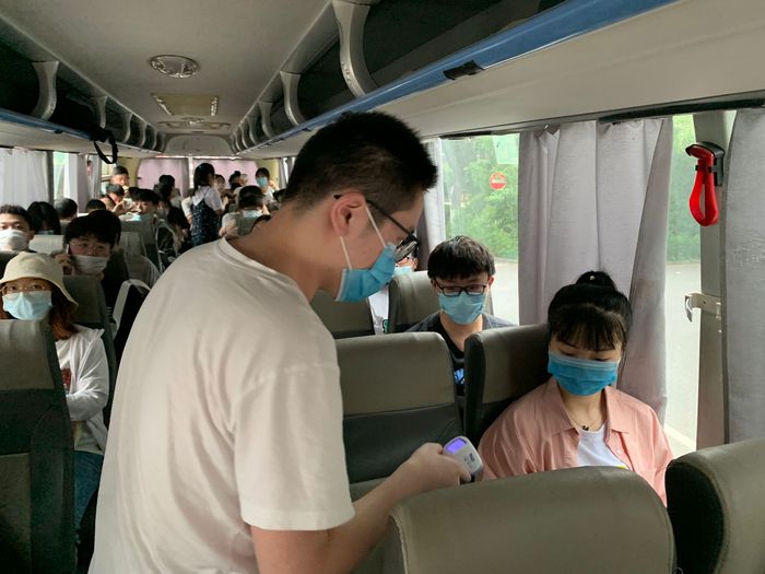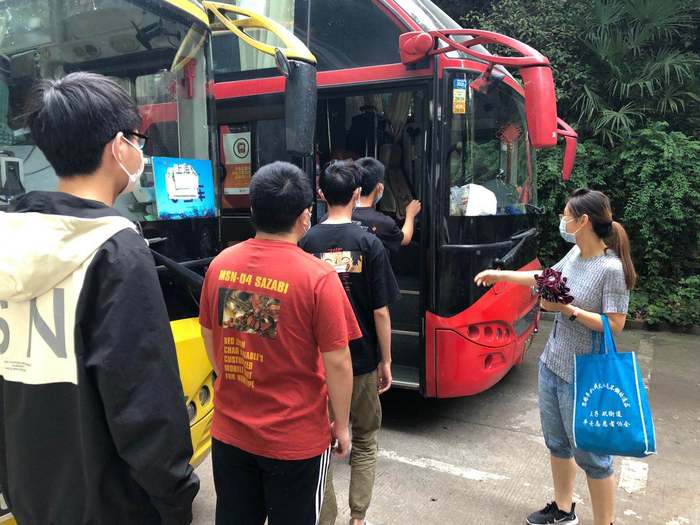 5月24日早晨6点,毕业班辅导员、学生志愿者为每位考生测量体温、核验苏康码、行程轨迹以及准考证。学院安排的6辆大巴车将我院274位考生安全有序地送入考点。崔璨、王诗琪老师全程送考,守护考生顺利完成考试。考试结束后,学院还为当天无法离开南京的同学提供了暖心接考服务,将需返校考生顺利送回学校。