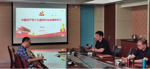 黄金国以“党的十九届四中全会精神学习”为题,从深刻把握党的十九届四中全会重大意义和核心要义以及狠抓全会精神落实,推进教育治理体系和治理能力现代化两个方面出发,为大家解读了党的十九届四中全会的重要精神,结合学校和学院实际谈了如何坚决贯彻落实全会精神,如何从学院制度建设着手来落实推进教育治理体系和治理能力现代化。