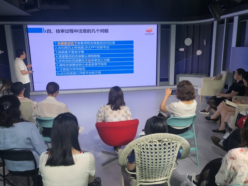 5月28日上午,资源建设中心杨海宁老师应邀在18楼演播室为部门各科室分享关于《课程资源建设与技审工作—2019版在线课程建设标准》的工作和学习体会。交流活动由栏目制作与推广部科室负责人冯帅主持。