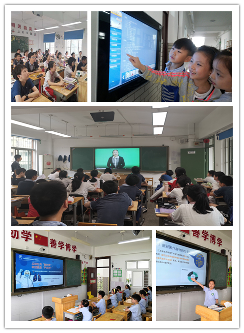 (金陵汇文中学和南京市龙江小学的学生们观看抗“疫”思政小课堂视频)