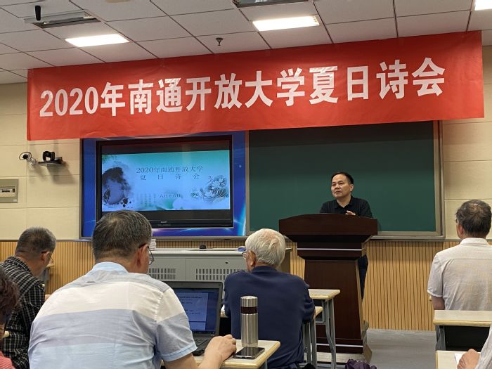 6月16日上午,艺术学院五位教师受邀参加了我院老年学员自发组织的2020年南通开放大学夏日诗会。在文化休闲系副主任马睿的主持下,学员们逐一上台朗诵自己的诗作,通过诗歌,感悟国家大事、人生百态。与会教师们在赞叹老年学员们学习成果的同时,也被他们的学习精神深深感动。
