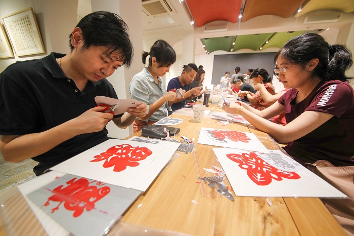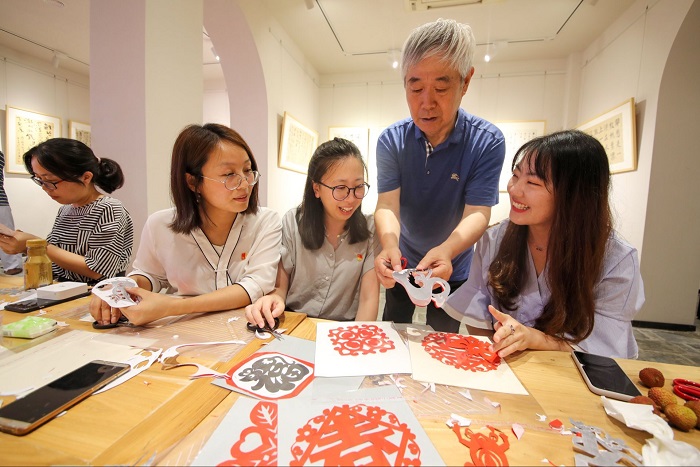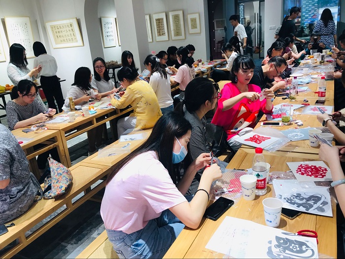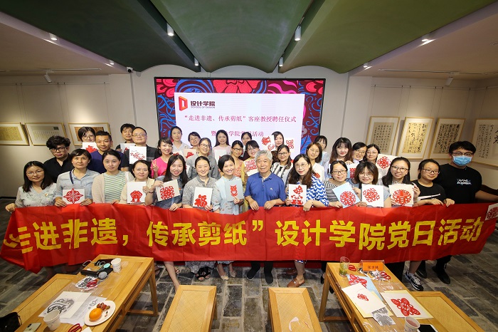 (设计学院老师积极参与剪纸活动)