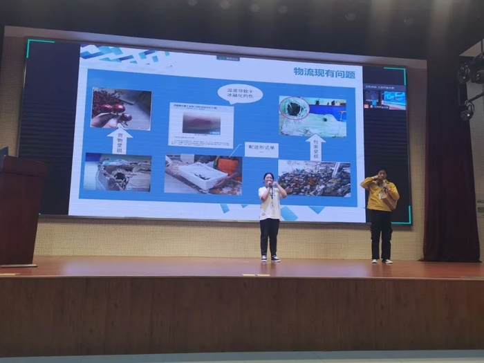 比赛当天,14支参赛团队中,“爸爸的冰箱生活空间”项目打头仗,尽管第一个出场,团队小伙伴却面无怯色,轮番上场精彩汇报,拔得头筹。“远方智能物流配送设备项目”项目团队的情景演出也是博足眼球,现场发挥张弛有度。