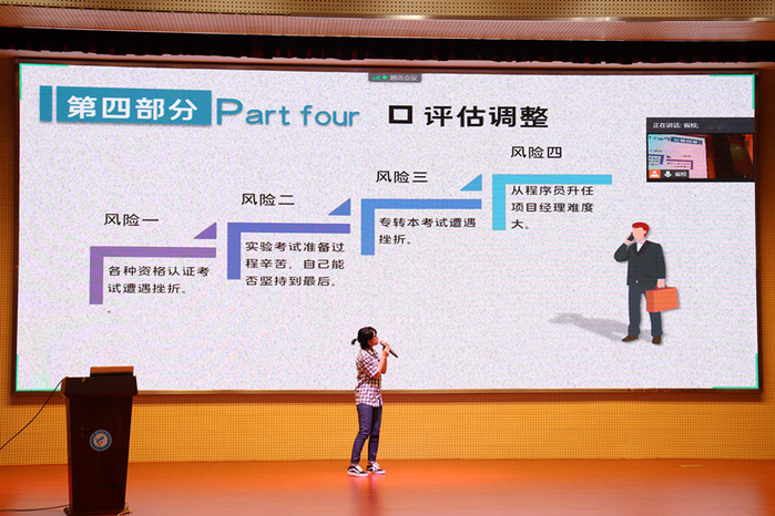 本次总决赛采用了线上线下相结合的方式进行,各办学点参赛选手通过腾讯会议在线参赛,校本部参赛选手现场参赛,比赛包含职业规划陈述以及提问答辩两个环节。职业规划陈述环节中,参赛选手有的从自身生活环境出发,有的以关键事件为切入点,有的以成长轨迹为线,用饱满的热情、昂扬的精神状态、专业的职业规划知识展示了家装设计师、首席机电工程师、软件工程师等不同类型的职业目标。提问答辩环节,专家们则针对选手职业定位和职业目标等方面进行提问,并对每位选手给予了建设性意见。