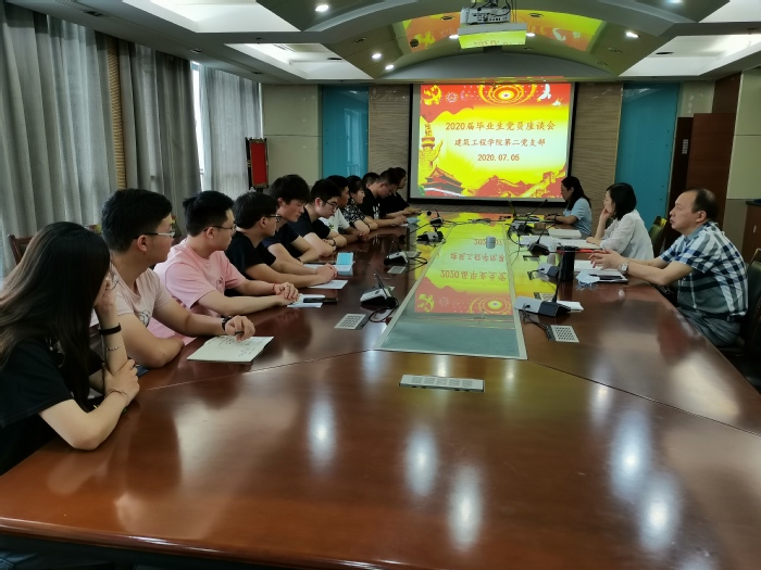 7月5日中午,建筑工程学院在应天校区八楼会议室组织开展了2020届毕业生党课暨毕业生党员座谈会。学院党总支部书记华永平、副书记吴红梅、第二党支部书记顾小丽、组织委员时海霞和全体毕业生党员、入党积极分子代表参加了活动。活动由顾小丽老师主持。