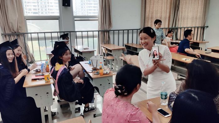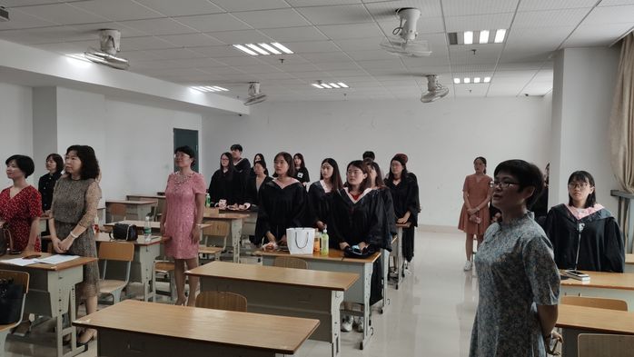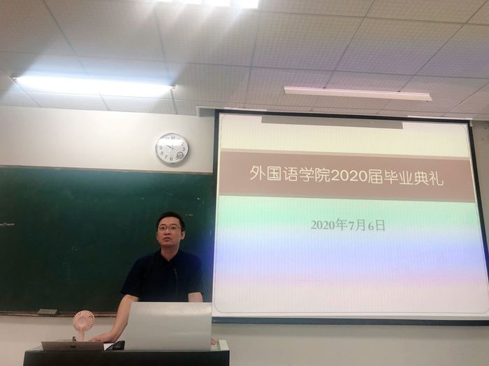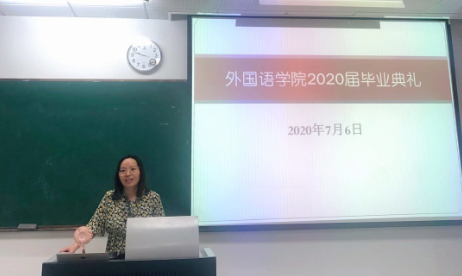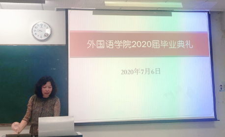 醉后才知酒浓,分别才知情重。为了给2020届毕业生留下美好的记忆,外国语学院于7月6日上午在应天教学楼206教室举行了一个特别温馨的毕业典礼。院长杨远、党总支部副书记章琼、党政联席会议成员、毕业班班主任、全体毕业班授课老师、辅导员和2020届毕业生参加了毕业典礼。典礼由院第一党支部书记周桔老师主持。