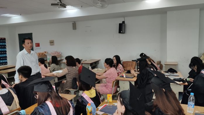 邹本平老师和班主任杨绘荣老师为毕业生颁发了毕业证书和学位证书。