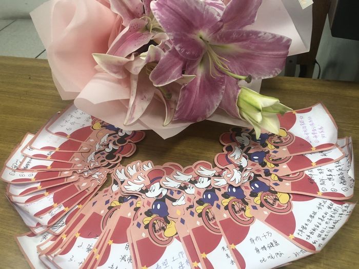 毕业生们纷纷走上讲台,为自己喜爱的老师们献上了献花和拥抱。