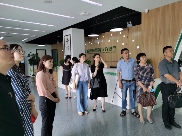 苏州农业职业技术学院一行首先参观了我校资源建设中心及江苏省终身教育学分银行,对我校开放课程资源建设及江苏省学分银行存储转化等有了更为细节深入了解。