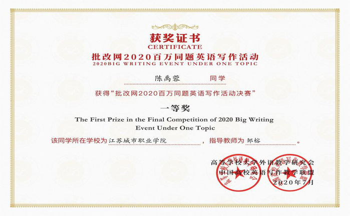 “百万同题英文写作活动”是由中国高校英语写作教学联盟和全国高等学校大学外语教学研究会联合主办的覆盖全国在校大学生的英文写作活动。本活动已经成功举办六届,已成为中国知名英语教学品牌活动。活动在共建、共享中国英语教学大数据的基础上,注入“鼓励学生挑战自我,提升国际交流能力”的要义,进一步提升英语学习兴趣,提高师生学习互动,为中国在校英语学习者和教学者提供了更为广阔的展示舞台。通过本次大赛,展现了我校高职学生英语写作水平和我校大学英语教学改革成果,体现了我校践行“以赛促学、以赛促教、以赛促研”的理念,进一步提升了我校高职学生的英语语言应用能力。