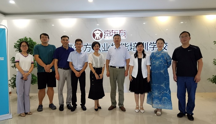 8月20日上午,设计学院院长姜春艳、党总支部书记邹佳、副院长孙培松等一行赴镇江丹阳易科职业技能培训学校(原“京东方职业技能培训学校”,以下简称“易科学校”)开展校校合作共建洽谈会。江苏省眼镜协会会长蔡来成、副会长刘国立、副秘书长王强亲临现场,易科学校校长陈红新主持接待。设计学院视觉设计系主任高峰、院办主任郭海燕陪同参加。