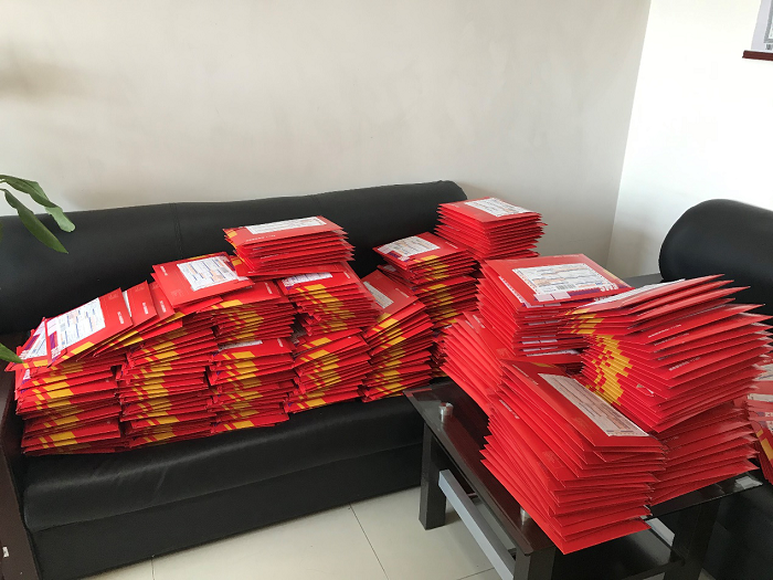 2020年9月7日上午,设计学院的小伙伴们组成“新生通知书发放小分队”来到学校招生工作处,进行2020级新生录取通知书以及相关报到材料的核对、装袋、发放等工作。从学生姓名到银行卡信息核对、从助学贷款指南到入伍宣传册,大家分工协作、有条不紊。不到三个小时,383份快递信封完美封印,整装待发。