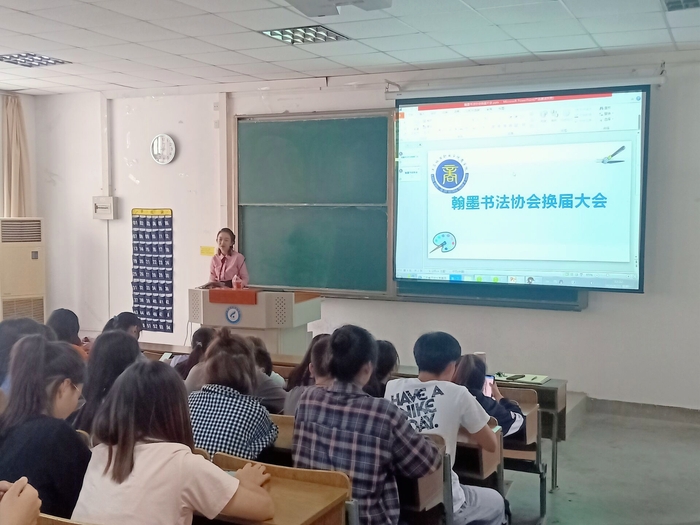 2020年9月21日,商学院翰墨书法协会换届大会在教学楼1-2阶梯教室正式召开,社团指导老师、社团干部及59名社团成员参加。