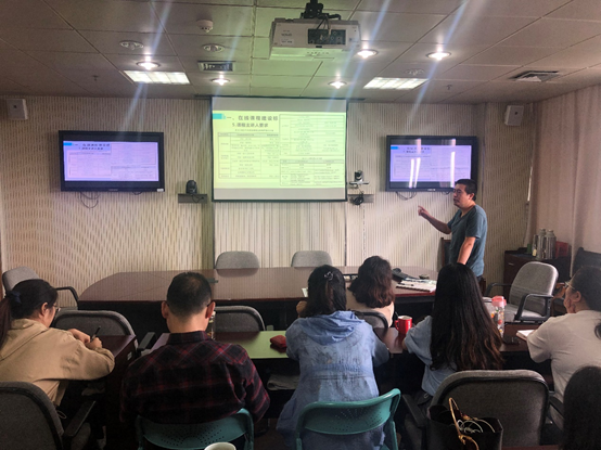 两位主讲老师许卫东和杨海宁均来自资源开发与保障部。许老师的PPT用思维导图的形式将一门课从开始到结束的重要环节,用不同颜色的色块标注出来,在每一项步骤中,还用简洁的文字标注好注意事项,告诉大家怎样避免可能会出现的问题,从而提高建课效率。杨老师给大家带来的是“课程资源建设与技审工作”,他精心准备的44页内容详实的PPT,让大家对课程建设流程、点石网注意事项、技审过程中注意问题有了较全面的了解。两位老师深入浅出的讲解,让培训课堂气氛活跃,1小时的培训不知不觉接近尾声,最后大家纷纷就工作与学习中遇到的实际问题展开交流,两位老师现场就提出的问题解疑释惑。