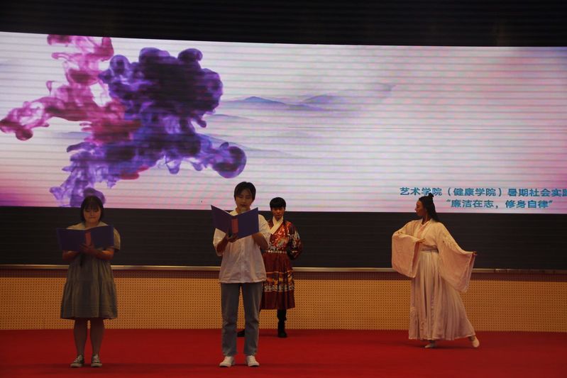 为全面总结我校暑期社会实践活动成果,将暑期社会实践活动的意义延伸到青年学生的学习生活中去,9月24日, 2020年大学生暑期社会实践成果分享会在应天校区体艺馆举行,来自办学系统的无锡开放大学团队、六个学院共12支特色团队以及校团委实践团队通过多种形式为到场的学生展示了一场别开生面的分享会。社会教育处、学生工作处、团委以及各学院党、团总支负责人参加了活动。