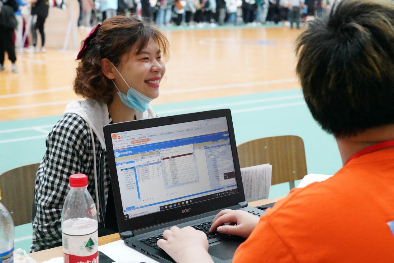 迎新工作如火如荼,到处都是忙碌的身影。现场负责迎新的老师和志愿者们热情周到的服务很快消除了新生们初来乍到的陌生感。