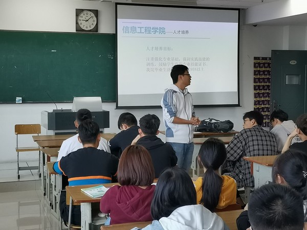 入学教育是大学新生的第一课,为帮助学院新生更好更快地适应大学生活,10月12日上午,信息工程学院在应天校区教学楼开展了2020级新生的入学教育活动,全体新生、新生班主任和辅导员参加了活动。