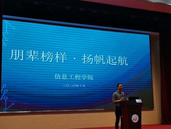 10月14日上午,信息工程学院在应天校区体艺馆406开展了2020级新生的入学教育之“校友讲座”,讲座主题为“朋辈榜样,扬帆起航”,邀请到09级校友韩卫展作为嘉宾与新生分享经验,活动由学院学生工作办公室主任刘文静主持,院长朱祎、2020级全体新生和辅导员参加了活动。