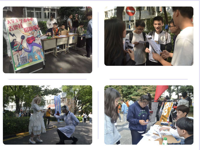 10月19日中午,一年一度的社团招新活动在定淮门东校区和应天校区如火如荼地展开。在活动现场,各社团在自己的招新“摊位”前摆放好宣传展板、展示材料,为了吸引更多新生驻足选择社团。各类社团都拿出自己最有特色的项目展示给大一萌新们。不少参加招新面试的同学在自我介绍时的侃侃而谈,回答提问时的游刃有余,给社团负责人们留下了良好的印象。当然,学生中亦不乏怀揣梦想的初生牛犊,他们同样用自身的实力和强烈的愿望,去展示自己想要加入社团的意愿。