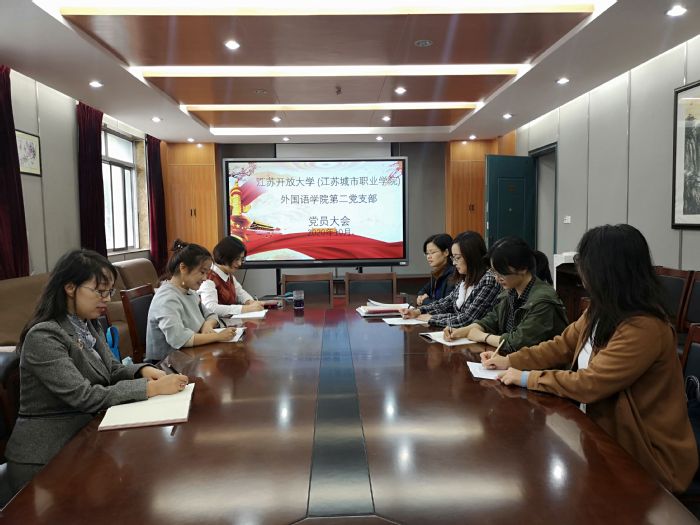 2020年10月28日下午,外国语学院第二党支部在古平岗小红楼二楼会议室召开了支部大会,主要内容是补选支部委员。会议由支部书记陈敏老师主持。第二支部全体党员参加了此次会议。