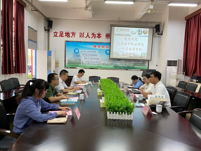调研的第二站是顺德职业技术学院,副院长张成副教授从顺职院的建校历史和商学院的创立史引入,介绍了商学院的办学经验和管理经验,双方主要就实训中心的建设和运行管理进行了细致的探讨,议题包括实训室的资产管理、日常使用管理和虚拟仿真实训室建设等方面。朱长春副院长一行参观了顺职院商学院的实训基地,通过实地考察,深入学习了顺德职业技术学院商学院实训室的管理经验以及产教融合背景下学生利用校内实训资源参与企业实习的具体实施策略,为商学院实训中心建设和学生实训提供了宝贵的参考经验。