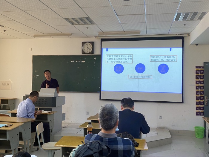 活动中,建筑工程学院无障碍研究协同中心的陈从建副教授、智能建造与区块链协同创新研究中心的徐德老师、工程管理研究所的张晓东教授分别介绍了自己所在科研平台的性质和任务,交流与汇报了各自的研究团队的主要工作以及取得的各项科研成果,对于“十四五”规划开局之年,如何贴近国家发展,进一步做好科研项目的拓展工作,也都做了详细的实施计划。