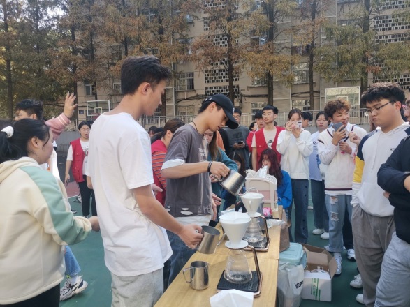 2020年11月18日中午12点,商学院品味咖啡社首届“茶语咖啡,青春有你”主题文化艺术节在东校区篮球场盛大开幕。本次活动面向商学院全体成员,共二百余位同学参与。活动由咖啡社社长何敏主持。