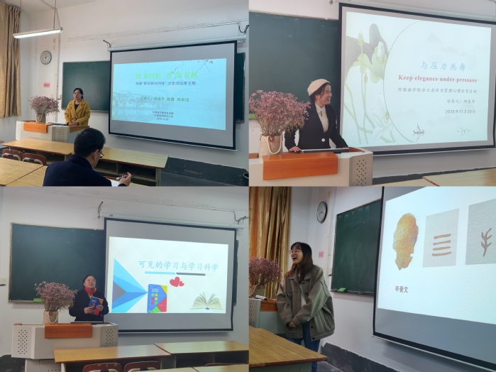 11月20日下午,外国语学院分工会在学院党总支部的领导下,举办了推进学院“教学研共同体”建设沙龙活动第5期。活动由外国语学院分工会主席孙雪羽主持,教师邹本平、陈霞、邓雨洁主讲。校党委常委、副校长牛玉韬出席,外国语学院全体教职工参与本次活动。