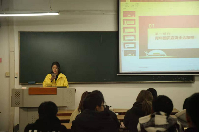 在系统学习之后,20广制1班团支部挑选了5位思想觉悟高、语言能力强的同学组成了“青年学子宣讲团”,在班级中进行“十九届五中全会精神”宣讲。同学们从“弘扬核心价值观,坚定文化自信”、“青年学子的责任与使命”、“坚持以人民为中心”等角度向同学们进行宣讲。