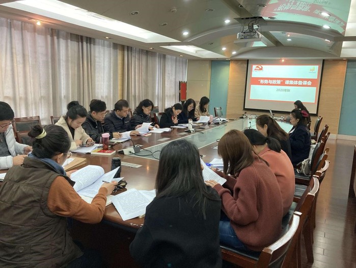根据《教育部关于加强新时代高校“形势与政策”课建设的若干意见》,今年秋学期,我校从思想政治理论课教师、哲学社会科学专业课教师、高校辅导员等教师队伍中择优遴选“形势与政策”课骨干教师,积极邀请学校和学院党政领导干部讲授“形势与政策”课,选聘校外专家参与“形势与政策”课,按专题内容组建了四支“校内外专家+骨干教师”的专兼职授课队伍。继10月9日我校举行了本学期第一次教学推进会暨集体备课会后,承担《我国经济社会发展专题》的商学院授课团队已于11月上旬举行了集体备课会。此次集体备课会主要针对第一专题和第四专题,下周马克思主义学院将邀请校外专家对“形势与政策”课进行指导,并对第三个专题《港澳台工作专题》集体备课。