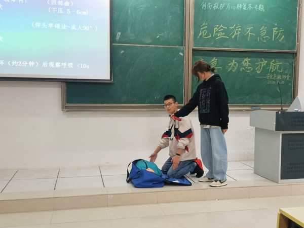 2020年11月20日,信息工程学院安全急救协会在教学楼210举行“创伤救护与心肺复苏”为主题的活动。本次活动分为“创伤救护”和“心肺复苏”两个环节开展。