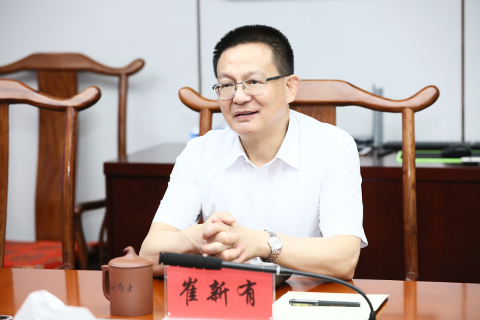 5月25日,湖北开放大学校长钟毓宁一行5人来我校交流访问。我校校长崔新有主持交流会。