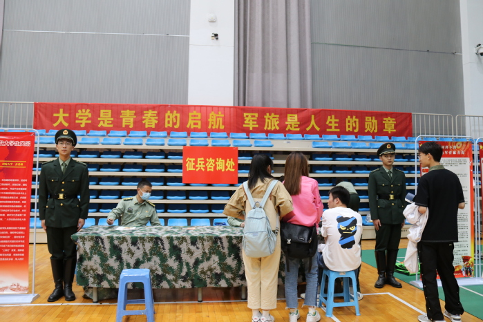 校园双选会不仅为用人单位现场招聘和毕业生就业实习提供交流平台,还首次将征兵宣传及直播荐岗引入进来。在双选会现场,征兵宣传处成为一大亮点,陆续不断有学生前来咨询,来自鼓楼区征兵办的工作人员,就应征入伍的基本条件、具体流程为学生做了说明,对有应征意向的学生开展一对一军旅生涯规划指导,并就学生们关心的优抚待遇、学费减免、复学转专业、专科毕业生免试入读普通本科、落户政策等相关问题作了详细解答。