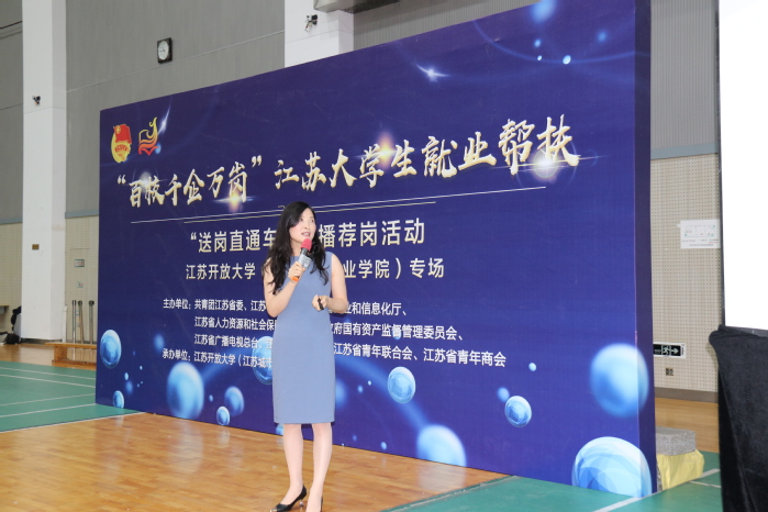 由共青团江苏省委、江苏省学生联合会、江苏省青年联合会、江苏省青年商会共同主办,江苏开放大学学生工作处、共青团江苏开放大学委员会承办的“百校千企万岗” 2021年江苏大学生就业帮扶“送岗直通车”直播荐岗(江苏开放大学专场)活动成为会场的一大热点,该活动邀请江苏省建工程集团、北控水务集团等7家优质企业参加直播荐岗,通过直播荐岗、现场直聘两个环节,为全省高校毕业生特别是建档立卡经济困难毕业生提供线上就业岗位推荐、线下求职面试、就业观引导等就业服务,助力毕业生实现更高质量就业。