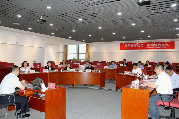 校长崔新有一行首先听取了淮安市党史陈列馆馆长马新文的专题报告“百年潮起共读史,砥砺奋进新征程——中国共产党在淮安的革命历程及启示”。随后,调研组与淮安开放大学校领导及相关人员进行了座谈交流。在听取了淮安开放大学党史学习教育开展情况的汇报后,崔新有充分肯定了其党史学习教育的举措和突出成果,并表示,要从党史学习教育中重温初心使命,使之成为不断前行中的不竭精神动力。他指出,江苏开放大学作为一所新型大学,相较于普通高校,文化传承与创新职能是其显著的特色和优势之一。我们要利用好这一优势,以党史学习教育为契机开展党建共建,共同整理、挖掘、提炼江苏地域的红色文化资源,力争在文化传承、宣传弘扬方面有所作为。一是要整合文化资源,融入教育教学,在人才培养方面用好红色资源;二是利用相关研究平台共同进行典型研究,在科学研究方面用好红色资源;三是要通过“大学、平台、体系”积极传播江苏红色文化,在社会服务方面用好红色资源。他强调,要集系统之力形成合力,共同擦亮江苏开放大学红色文化品牌,推进我校大学文化工程建设。