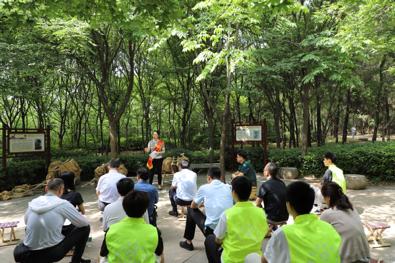 全体人员来到淮海战役纪念塔前,瞻仰淮海战役烈士纪念塔,向淮海战役烈士敬献花篮,怀着崇敬的心情举起右手庄严宣誓,重温入党誓词。大家仔细观看镌刻在墙壁上的“淮海战役烈士英名录”,感慨万千:“红色故事是我们民族集体记忆的一部分,它们所承载的时代精神无论在战争年代还是和平年代,都凝聚着、展示着、传递着正能量,我们要传承红色基因、传播红色资源、发扬红色精神、讲好红色故事。”