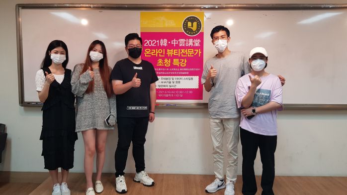 我校国际合作与交流办公室、艺术学院相关师生现场参加了本次活动;韩国湖南大学国际交流处、美容系相关师生线上参加了本次活动。