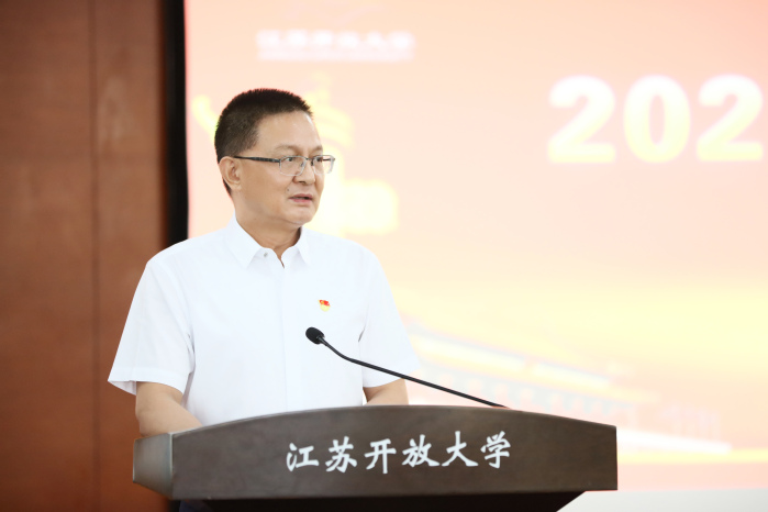 会议在庄严的国歌声中拉开序幕。党委书记王建明作了题为《汲取红色力量 铭记初心前行 为早日建成高水平开放大学而不懈奋斗》的报告。