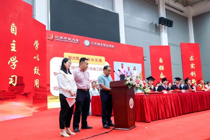 毕业生代表、建筑工程学院张大高同学一家既是家人、又是同学。他们用学习、生活诠释了江苏开放大学是根植江苏大地的,江苏人民的大学。